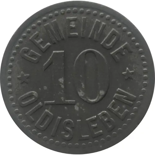 | Obverse lettering | GEMEINDE 10 ★ OLDISLEBEN ★ (Translation: GEMEINDE OLDISLEBEN = COMMUNITY OLDISLEBEN) |