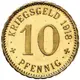 | Reverse lettering | KRIEGSGELD 1918 10 PFENNIG |