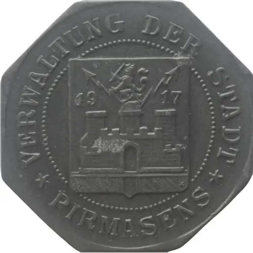 VERWALTUNG DER STADT 19 17 ★ PIRMASENS ★ (Translation: Administration of the City of Pirmasens) |