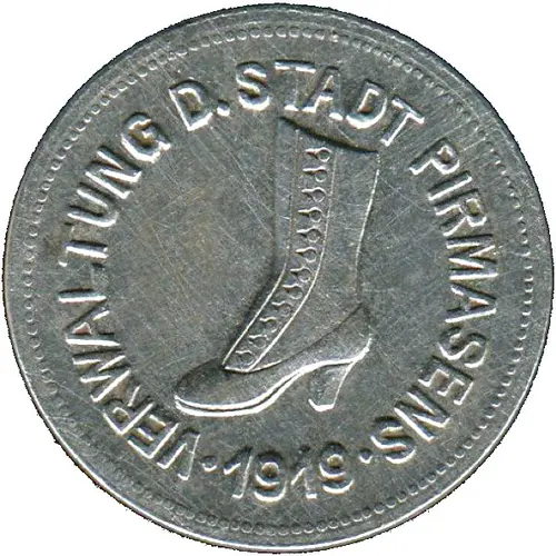 | Obverse lettering | VERWALTUNG D. STADT PIRMASENS •1919• |