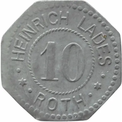 | Obverse lettering | HEINRICH LADES 10 ● ★ ● ROTH ● ★ ● |