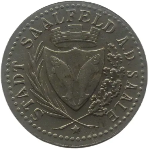 Obverse lettering STADT SAALFELD. A. D. SAALE ★