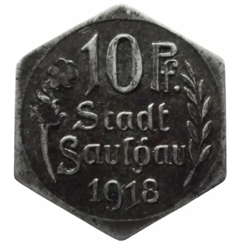 | نوشتههای روی سکه | 10 Pf Stadt Saulgau 1918 |