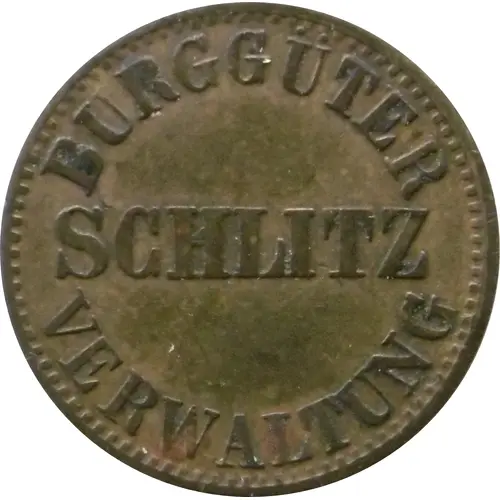 Obverse lettering BURGGÜTER SCHLITZ VERWALTUNG