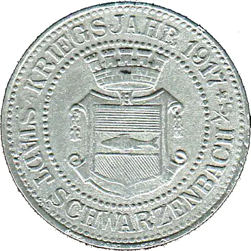 | Obverse lettering | KRIEGSJAHR 1917 ★ STADT SCHWARZENBACH A/S. ★ |