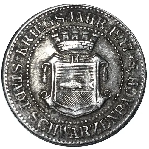 Obverse lettering KRIEGSJAHR 1917 ★ STADT SCHWARZENBACH A/S. ★