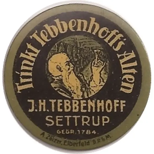 | Obverse lettering | Trinkt Tebbenhoff´s Alten J.H. Tebbenhoff Settrup Gegr. 1784 A. Zölze, Elberfeld, DRBM |
