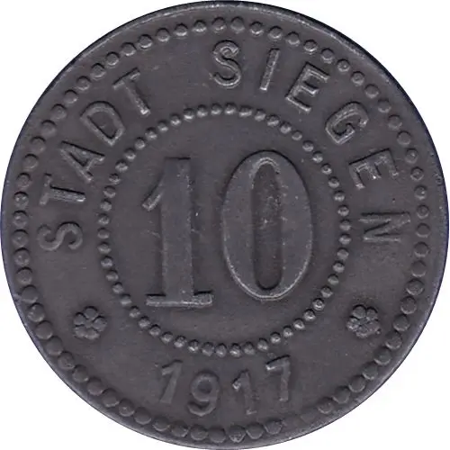 | Obverse lettering | STADT SIEGEN 10 ✿ 1917 ✿ |
