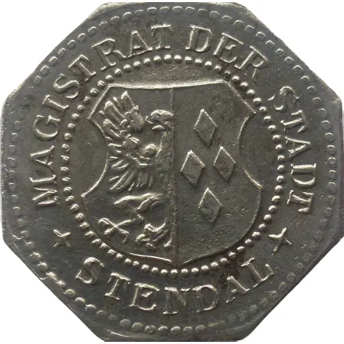 | Obverse lettering | MAGISTRAT DER STADT ✦ STENDAL ✦ (Translation: ADMINISTRATION OF THE CITY OF ✭ STENDAL ✭) |