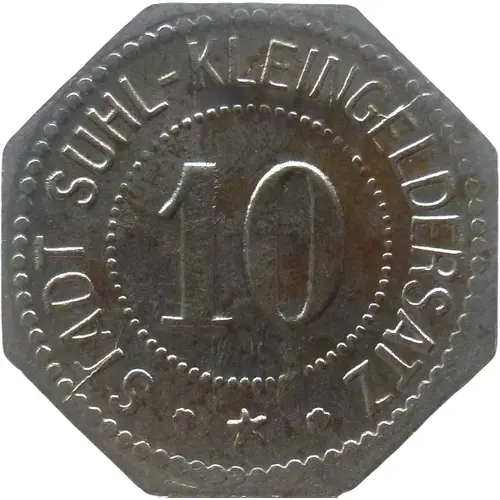 | Obverse lettering | STADT SUHL-KLEINGELDERSATZ 10 ✿ ★ ✿ |