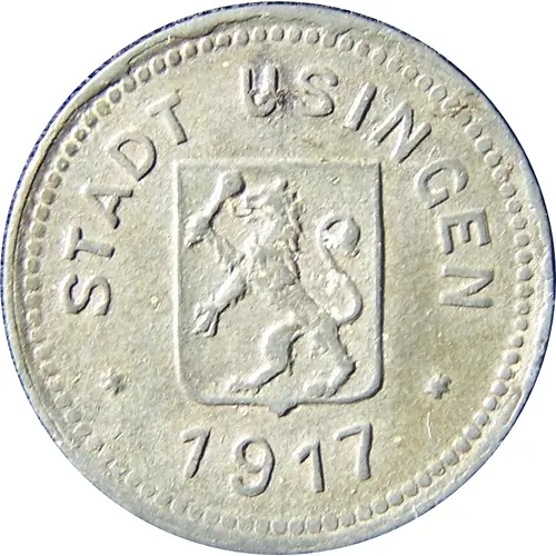 | Obverse lettering | STADT USINGEN ✶ 1917 ✶ |