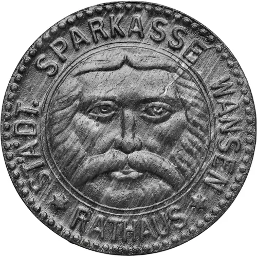 | Obverse lettering | STÄDT. SPARKASSE WANSEN ✶ RATHAUS ✶ |