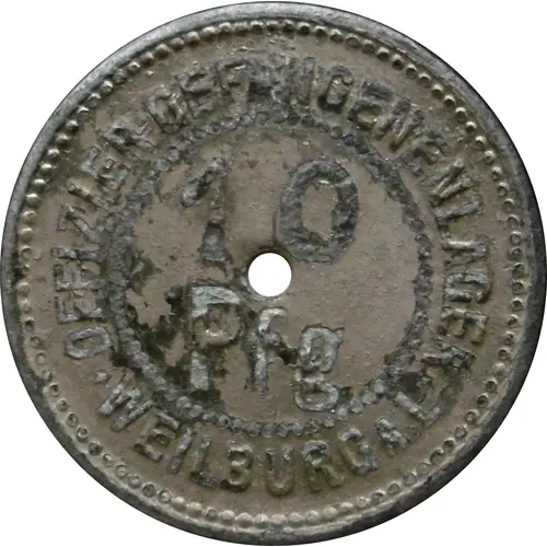 | Obverse lettering | OFFIZIER-GEFANGENENLAGER 10 Pfg ★ WEILBURG A.L. ★ |