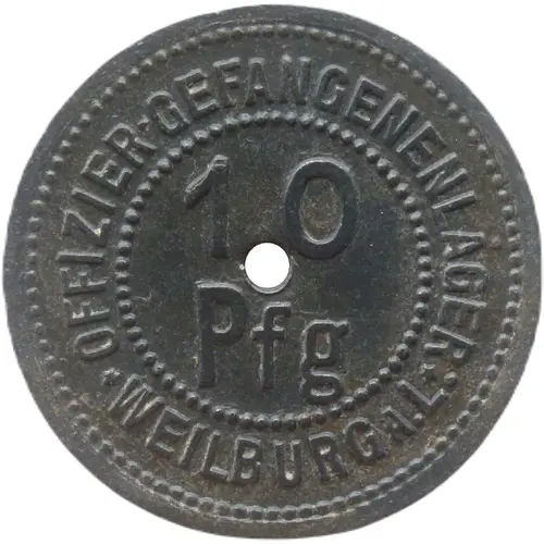 | Obverse lettering | OFFIZIER-GEFANGENENLAGER 10 Pfg ★ WEILBURG A.L. ★ |