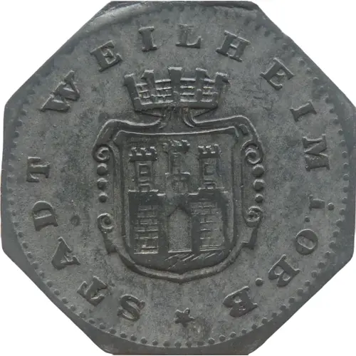 | Obverse lettering | STADT WEILHEIM I.OB.B ★ |