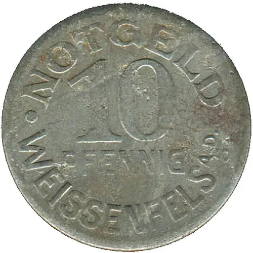 | Obverse lettering | NOTGELD 10 PFENNIG ● WEISSENFELS A.D.S ● |