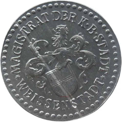Artistry: As with many Notgeld issues, the specific engraver for this Weißenstadt 10 Pfennig is typically unrecorded, reflecting the utilitarian and often expedient nature of its production. The stylistic school leans towards functionalism, prioritizing clear legibility of the denomination and issuer. The design would characteristically feature the legend "Weißenstadt" and "10 Pfennig," likely accompanied by the city's coat of arms or a simple, locally relevant motif, ensuring immediate recognition within the community it served. Artistry, while sometimes rudimentary, often conveyed a strong sense of civic identity and local pride.