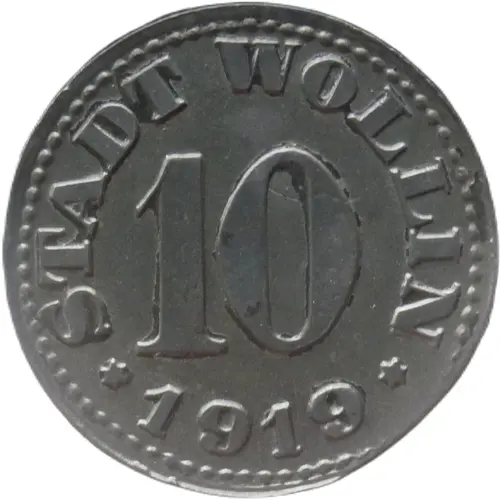 | Obverse lettering | STADT WOLLIN 10 ✶ 1919 ✶ |