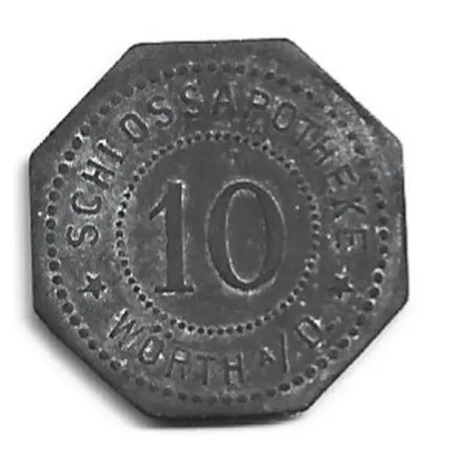 | Obverse lettering | SCHLOSSAPOTHEKE WÖRTH A/D 10 |