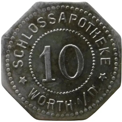 | Obverse lettering | SCHLOSSAPOTHEKE 10 ★ WÖRTH ᴬ/D ★ |