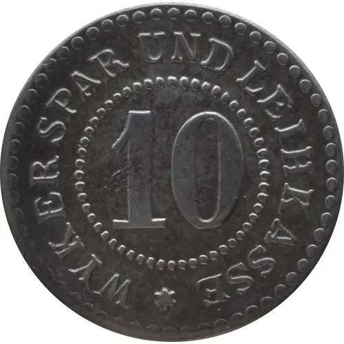 | Obverse lettering | WYKER SPAR UND LEIHKASSE 10 ✶ |