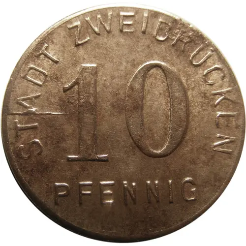 Obverse lettering STADT ZWEIBRÜCKEN 10 PFENNIG