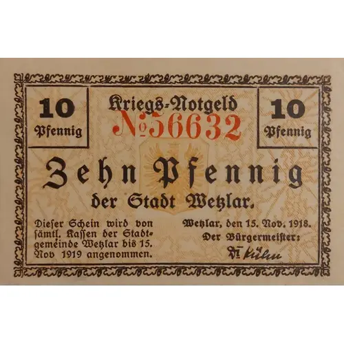 | Issuer | City of Wetzlar (Prussian province of Rhine) |