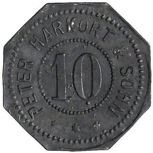 | Obverse lettering | PETER HARKORT & SOHN 10 |