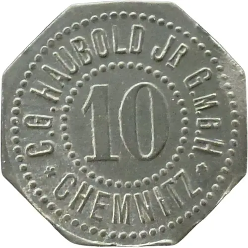 | Obverse lettering | C.G. HAUBOLD JR G.M.B.H. 10 CHEMNITZ |