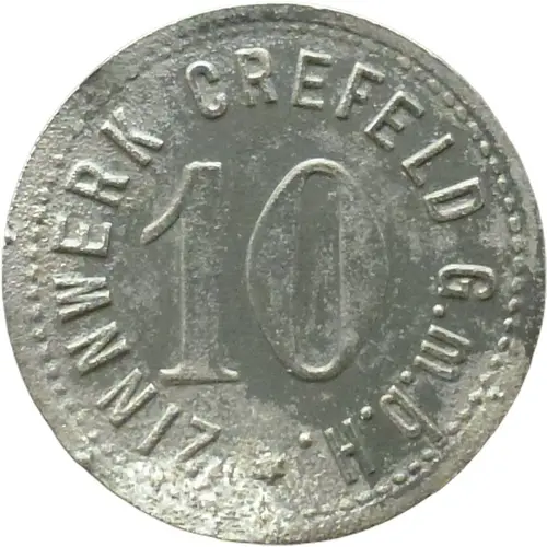 | Obverse lettering | ZINNWERK CREFELD G.m.b.H. 10 |