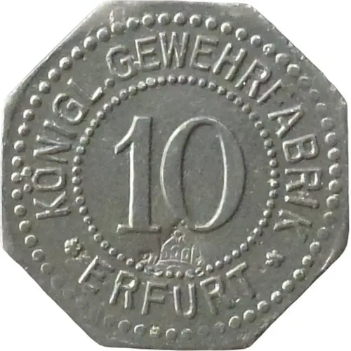 | Надписи аверса | KÖNIGL. GEWEHRFABRIK 10 (countermark: Miter) ✿ ERFURT ✿ |
