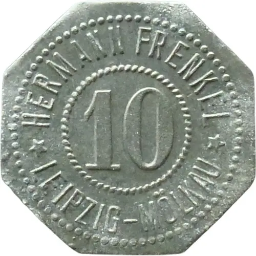 Legenda do anverso HERMANN FRENKEL 10 LEIPZIG-MÖLKAU