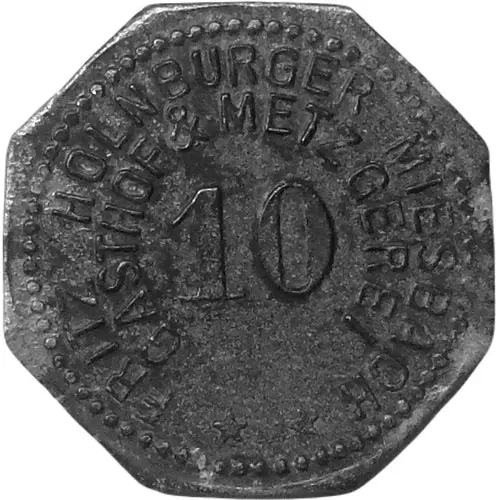 | Obverse lettering | FRITZ HOLNBURGER MIESBACH GAST & METZFEREI 10 |
