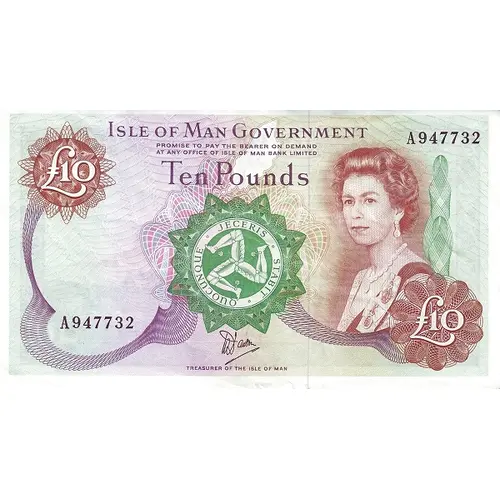 | Obverse lettering | Isle of Man Government Promise to pay the bearer on demand at any office of the Isle of Man Bank Limited Ten Pounds |