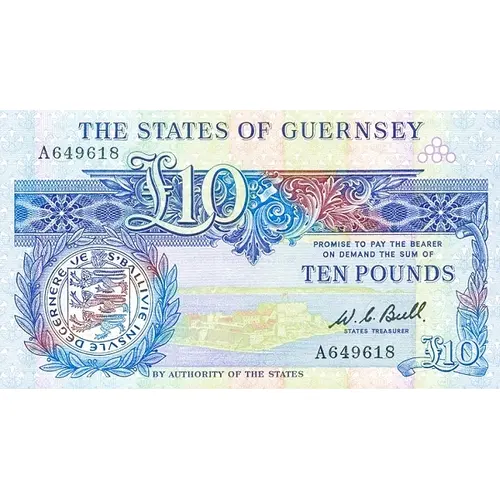 The States of Guernsey Promise to pay the bearer on demand the sum of Ten Pounds By authority of the States |