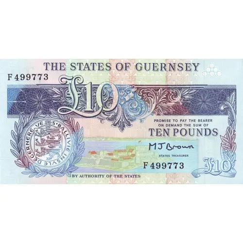 The States of Guernsey Promise to pay the bearer on demand the sum of Ten Pounds By authority of the States |