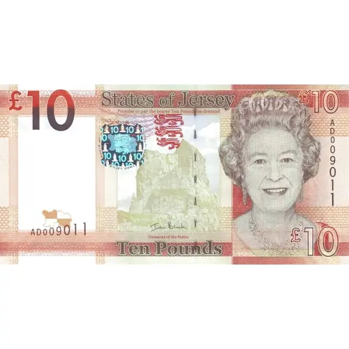 States of Jersey Promise to pay the bearer Ten Pounds on demand The Hermitage Ten Pounds |