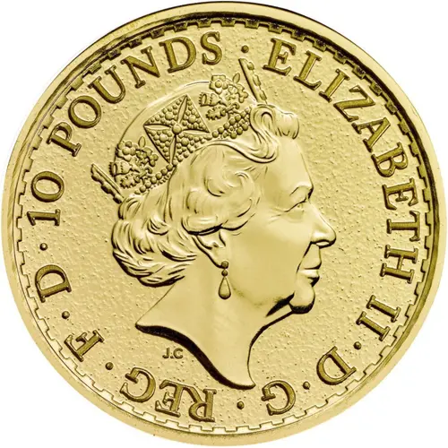 | Reverse lettering | ` BRITANNIA ` 2016 ` 1/10 oz ` 999.9 ` FINE ` GOLD ` NATHAN |