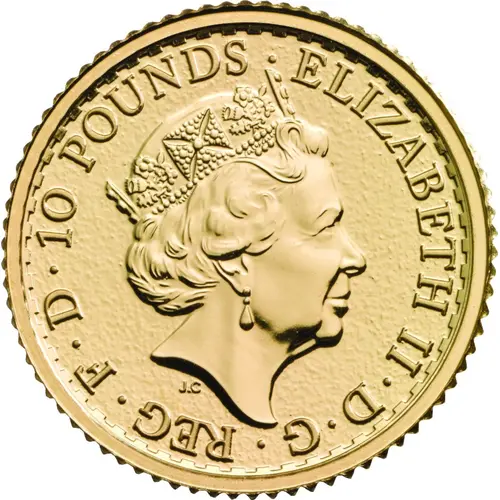 | Reverse lettering | ` BRITANNIA ` 2019 ` 1/10 oz ` 999.9 ` FINE ` GOLD ` NATHAN |
