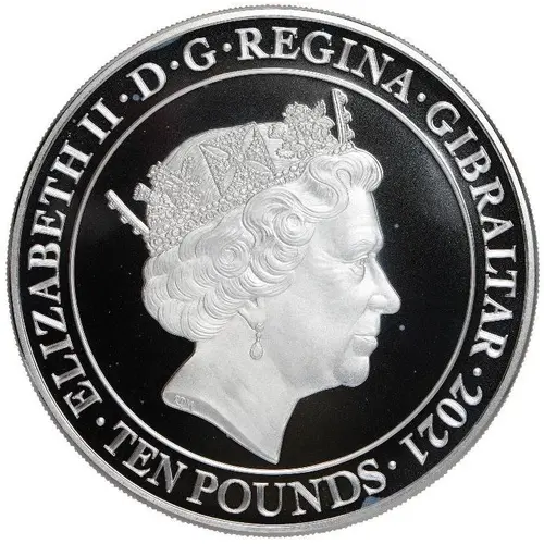 | Obverse lettering | ELIZABETH · II · DEI · GRA · REGINA · GIBRALTAR · 2021 RDM · TEN POUNDS · (Translation: Elizabeth II by the Grace of God Queen of Gibraltar) |