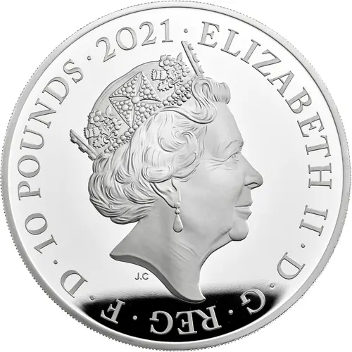 | Obverse lettering | ELIZABETH II·D·G·REG·F·D·10 POUNDS·2021· J.C (Translation: Elizabeth the Second by the Grace of God Queen Defender of the Faith) |