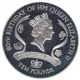 | Reverse lettering | 80TH BIRTHDAY OF HM QUEEN ELIZABETH II 21ST APRIL 2006 TEN POUNDS |