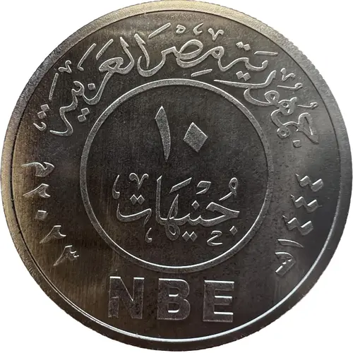 | Obverse lettering | جمهورية مصر العربية ١٠ جنيهات NBE ١٤٤٤هـ ٢٠٢٣م (Translation: Arab Republic of Egypt 10 Pounds 2023 AD -1444 Hijri) |