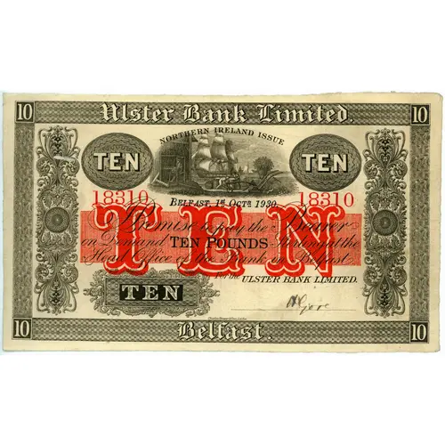 | Obverse lettering | Ulster Bank Limited Northern Ireland Issue I Promise to pay the Bearer on Demand Ten Pounds Sterling at the Head Office of the Bank in Belfast For the Ulster Bank Limited Belfast |