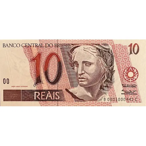 | نوشتههای روی اسکناس | BANCO CENTRAL DO BRASIL 10 DEUS SEJA LOUVADO MINISTRO DA FAZENDA PRESIDENTE DO BANCO CENTRAL DO BRASIL 10 REAIS (Translation: Central Bank of Brazil 10 God Be Praised Finance Minister President of the Central Bank of Brazil 10 Reais) |