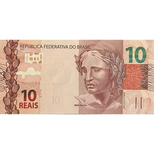 | Chữ khắc mặt trước | REPÚBLICA FEDERATIVA DO BRASIL 10 2010 10 REAIS REPÚBLICA DEUS SEJA LOUVADO (Translation: Federative Republic of Brazil 10 2010 10 Reais Republic God be praised) |