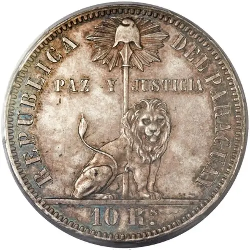 | Obverse lettering | REPUBLICA DEL PARAGUAY PAZ Y JUSTICIA 10 Rs (Translation: Republic of Paraguay Peace and Justice (National motto of Paraguay) 10 Reales) |