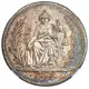 Seated woman (Liberty) with symbols of peace (olive branch) and justice (sword and scales) with year of issue below |