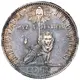 Seated woman (Liberty) with symbols of peace (olive branch) and justice (sword and scales) with year of issue below |