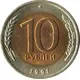 | Reverse lettering | 10 РУБЛЕЙ ЛМД 1991 (Translation: 10 Roubles LMD) |